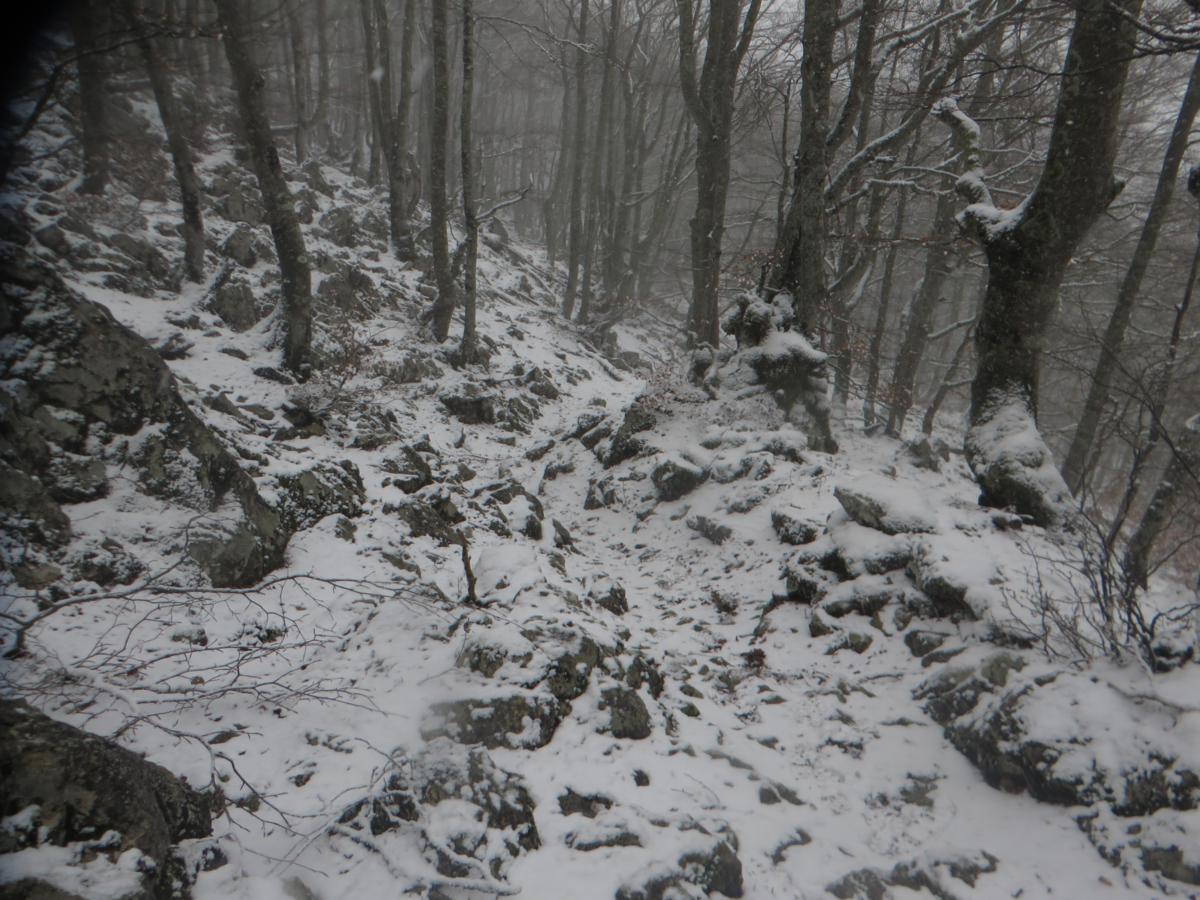Cogemos el sendero que sale cerca del corral y nos introducimos en el hayedo, antes de salir de el, nos ponemos ropa de abrigo, ya que el viento sopla fuerte.