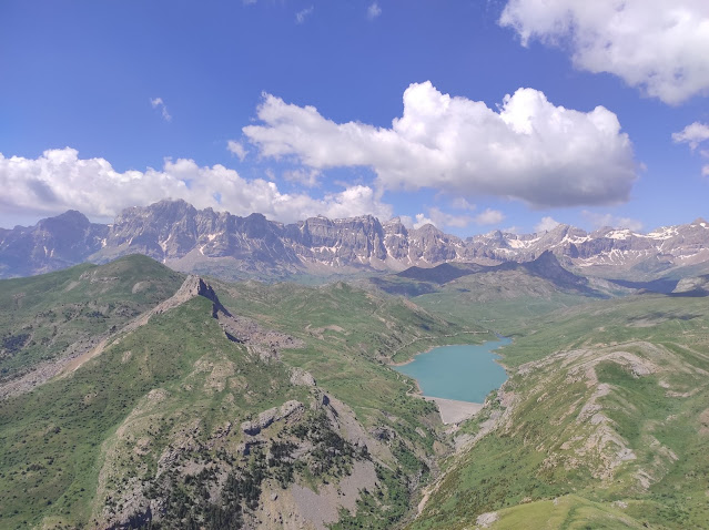 Desde el Pico Pacino (1.965 mts) tenemos unas vistas espectaculares al Valle de Tena, con el embalse de Lanuza debajo.
