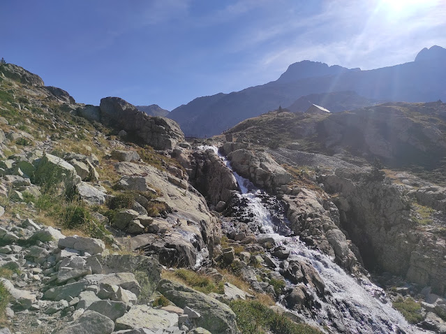 El agua cae de los Ibones superiores por el río, formando preciosas cascadas y pozas.